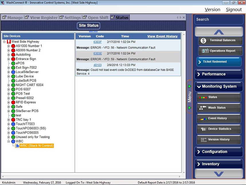 The Site Status allows you to see if all your sites are open and functioning properly. View the status or error message associated with any component.