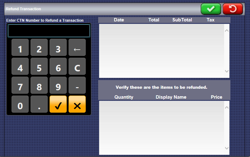 - In the Enter CTN Number to Refund a Transaction box, type the CTN number located at the top of the customer's receipt.