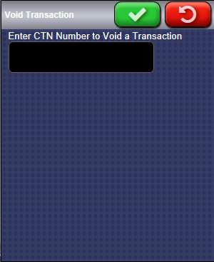 - From the customer’s receipt, type the CTN number in Enter CTN Number to Void a Transaction, and then press the ENTER key.