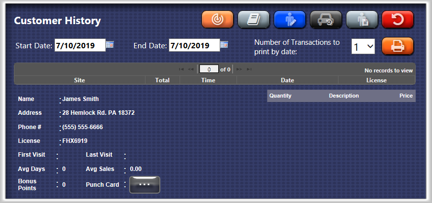 - Click the Edit Customer button to Update Customer Information for Bonus Point and Punch Cards. You can add the new amount and the reason for tracking purposes, and then click the Save button.