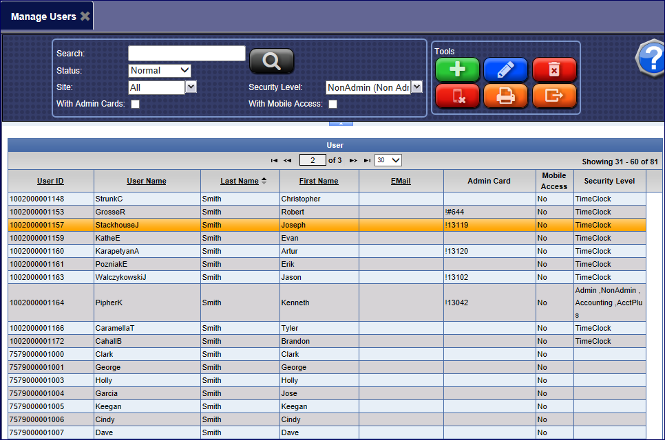 - In the Cash Access (TNC) box, type the User’s Admin Card number.