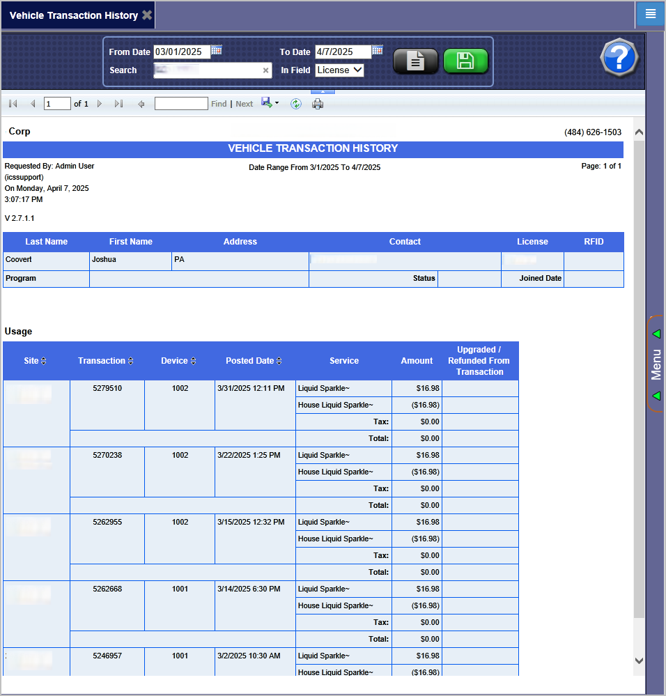 To view the Vehicle Transaction History report, follow these steps: