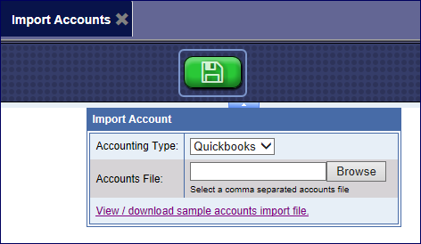 - In the Accounts File box, click the browse button and then select a tab separated accounts file. This file will need to be exported from your accounting package prior to doing this.