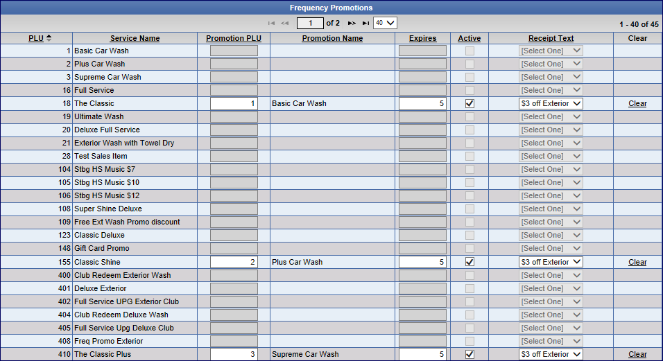 Encourage loyalty by rewarding customers who purchase a service with a price reduction on a return visit within a specified number of days. You can personalize the frequency promotion text that prints at the bottom of customer’s receipt along with the auto generated Wash Code and *barcode.