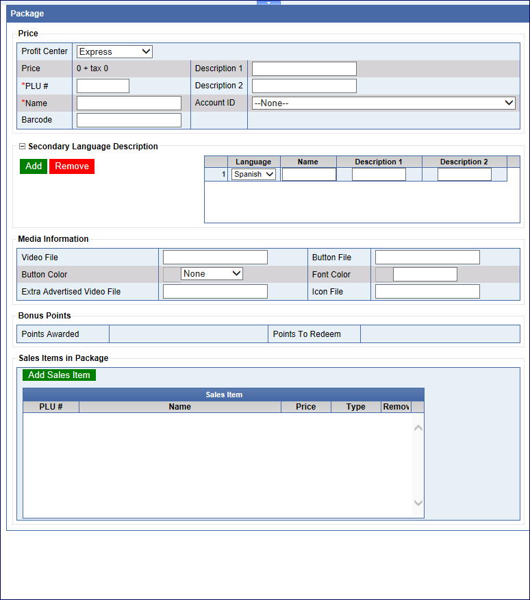 - In the Sales Items in Package section, click to select the Add Sales Item button.