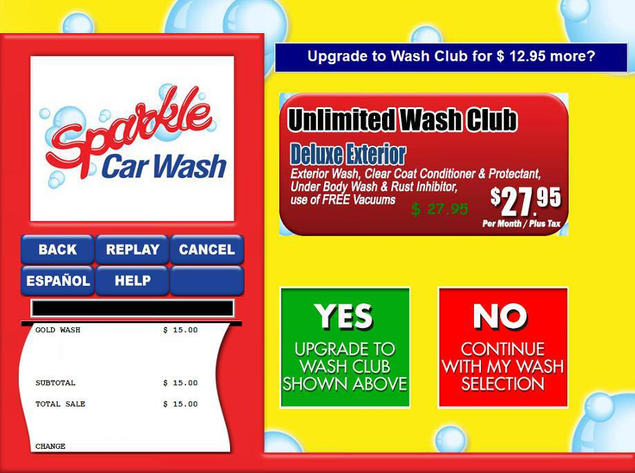 After the customer chooses a base wash that has a club wash upgrade reference, the Club Upgrade for that base service is