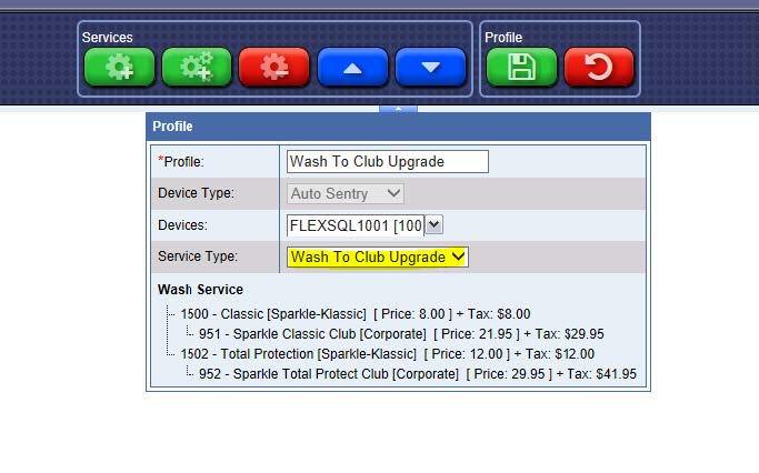 - In the Profile Type list, select Wash to Club Upgrade allowing the car wash to assign a specific club to a specific base wash.