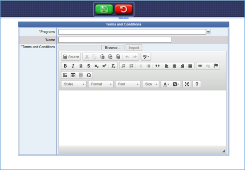 - Click the Import button to import a .txt or .doc file that contains the Terms & Conditions.