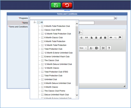 - In the Programs box, select the program(s) that the terms and conditions apply to from the program list.