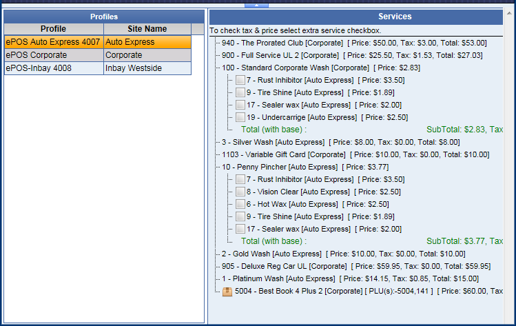 - Add Wash Services and Extra Services to the ePOS Profile.