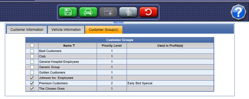 - Click the Customer Group(s) tab next to the Vehicle Information tab.