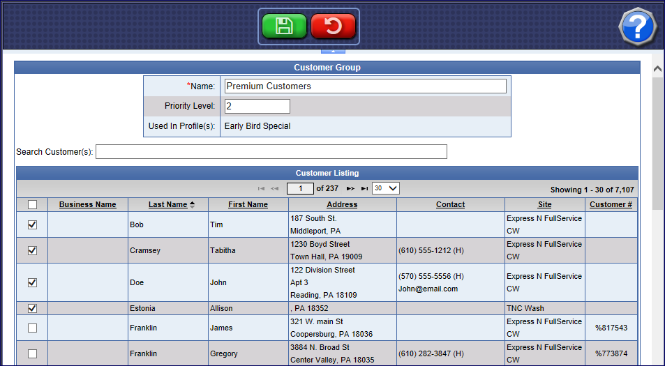 - To add or remove the customer from the Group, click the checkbox for each individual customer under the Customer Listing.