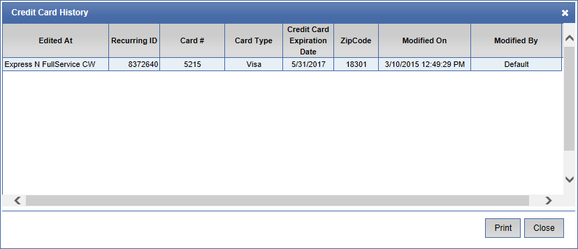 - If you want, you can print the Credit Card History by clicking the Print button.