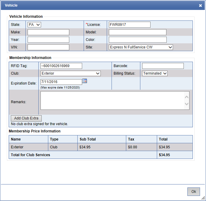 Click to select the Club Customer, and then click the Edit Vehicle button.