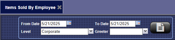 From the Items Sold by Employee Report toolbar, you can Save, Print, or Export the report.