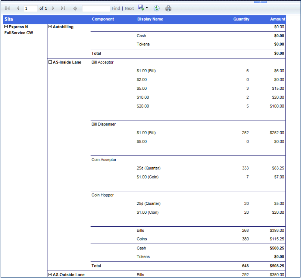 next to the Site or Device and the user can drill-down from the Site level all the way to the individual component level in a device to see the ending balance on that specific day.