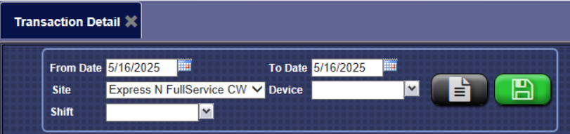 The Transaction Detail Report displays all transactions that were sold and are broken down Sites, Device and Shift to view the information.