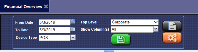 - From the Financial Overview report toolbar, you can Save, Print, or Export the report.