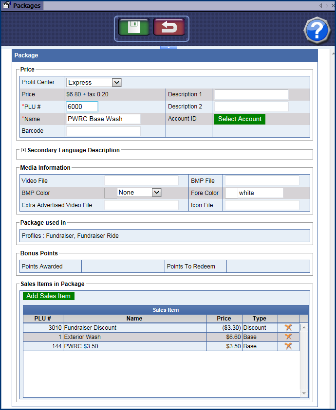 In this step, an individual Package PLU needs to be created for each wash that will be available to the fundraiser customer. These packages will be the wash selections that show on the screen after the customer enters the fundraiser code.