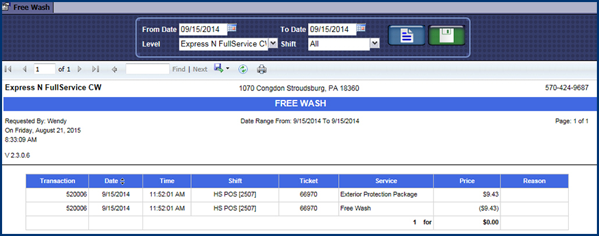 From the Prepaid Balance report toolbar, you can Export, Save, or Print the report.