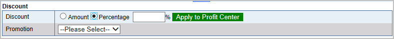 - If applying the discount to a Profit Center(s), click to select Apply to Profit Center button, and then click to select the profit centers.