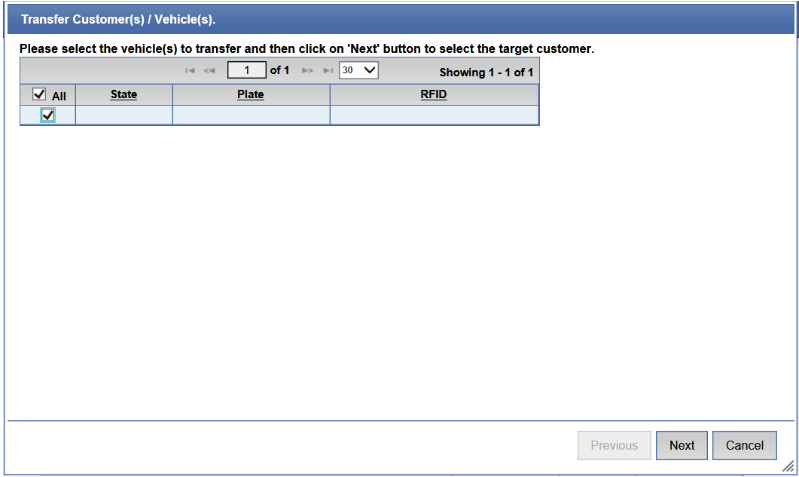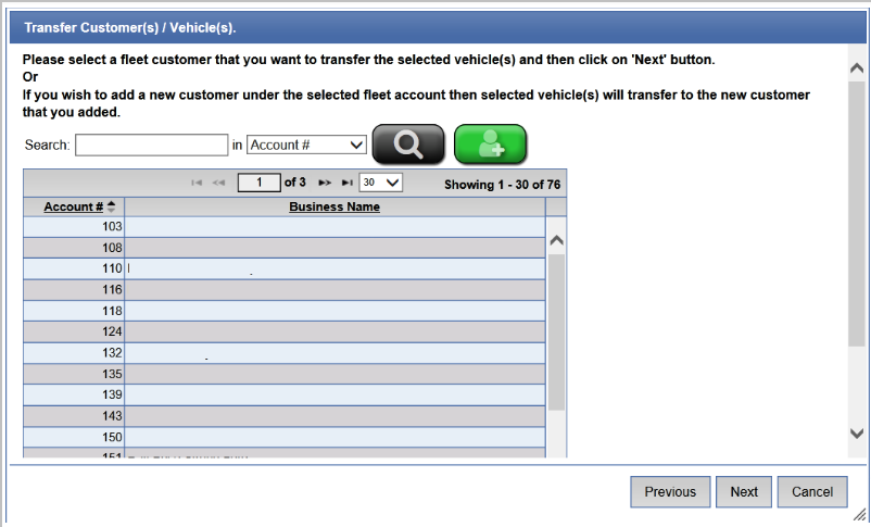 Transfer a fleet vehicle from one customer to another fleet account. If this is the last remaining vehicle in the fleet that you are transferring, a prompt will appear asking if you want to close out the fleet.