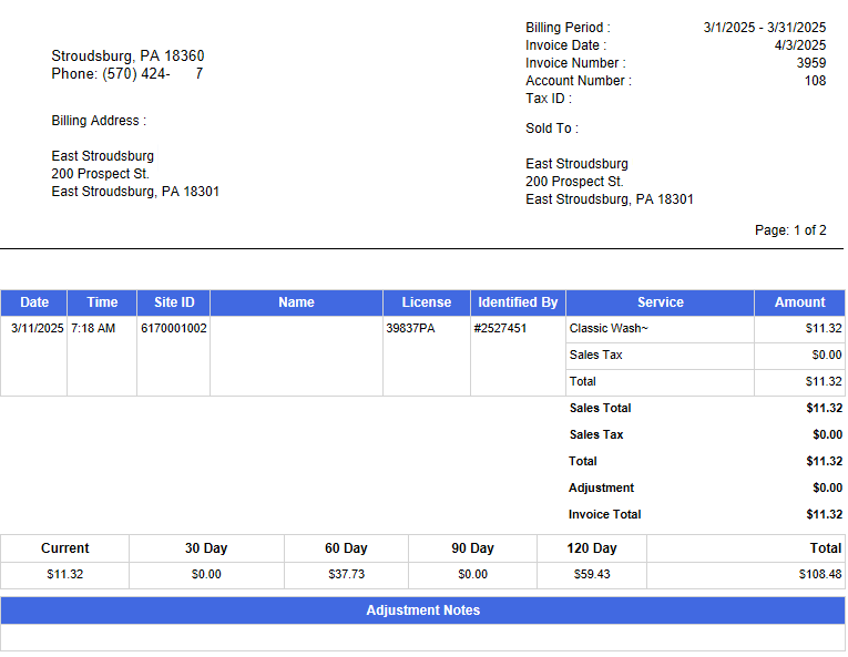 Invoice adjustments and their reasons will also be reflected in the invoice generated within WashConnect.