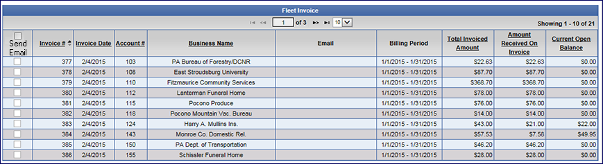 - From the Fleet Invoice list, click to select a Fleet Invoice Record.