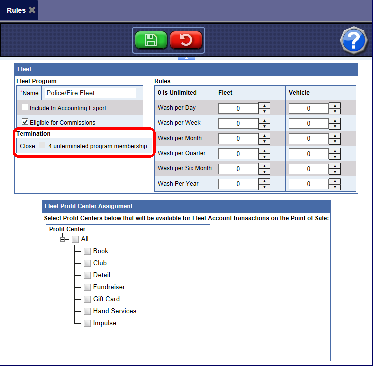 NOTE: If there are active Fleet Accounts using the Fleet Rule, terminate or transfer the active Fleet Account customers to another Fleet Account that has a different Fleet Rule in order to Close the Fleet Rule.