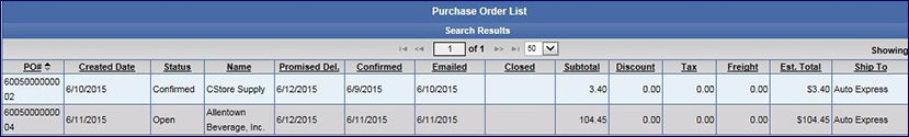 - Click to select an Open, Pending, or Confirmed Purchase Order from the Purchase Order List.