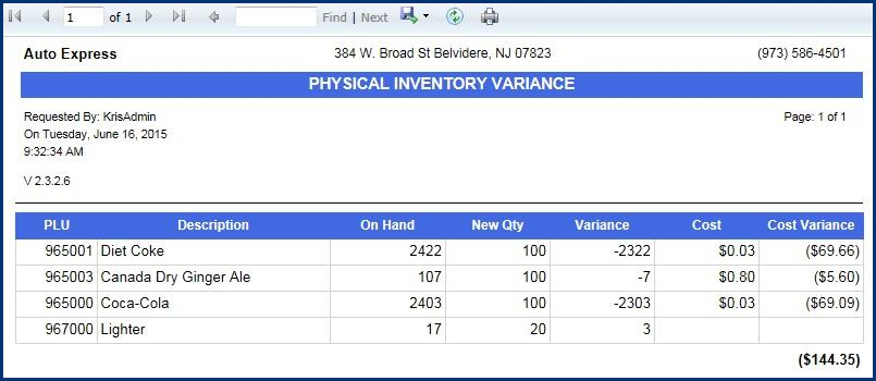 - On the Inventory menu, select Reports, and then select Inventory Variance.