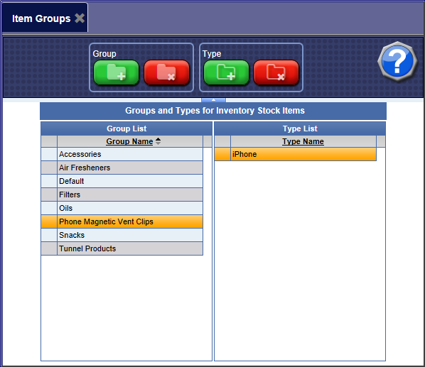 Add Inventory Groups and Types for inventory stock items at the Corporate location. At the local site, you can only view groups and types but cannot add or delete.