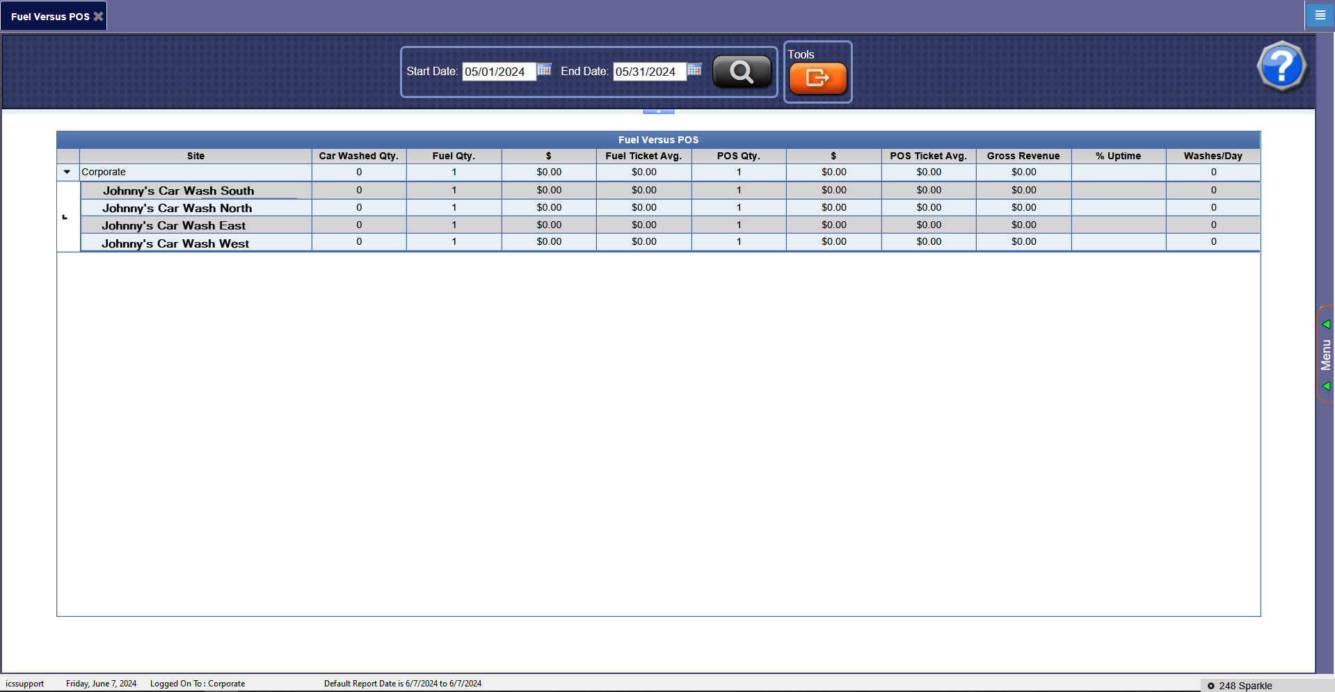 NOTE: When logged in at the Corporate location, the entire Corporate structure will be available. When logged in at a site level, only that site will be available for selection.