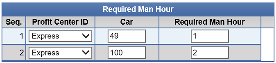 - To set a required man hour sequence, log in to the local level of WashConnect > System Setup > Profit Centers > Req. Man Hours.