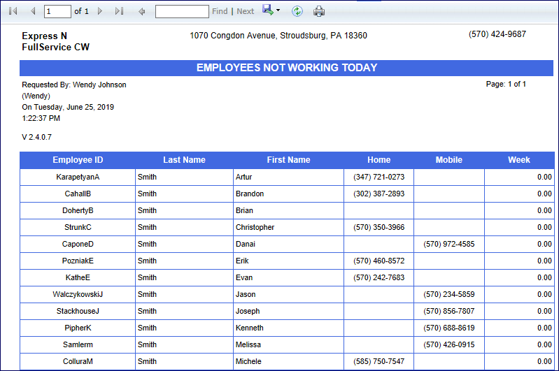 Use your time clock report to access your list of Employees Not Working Today.