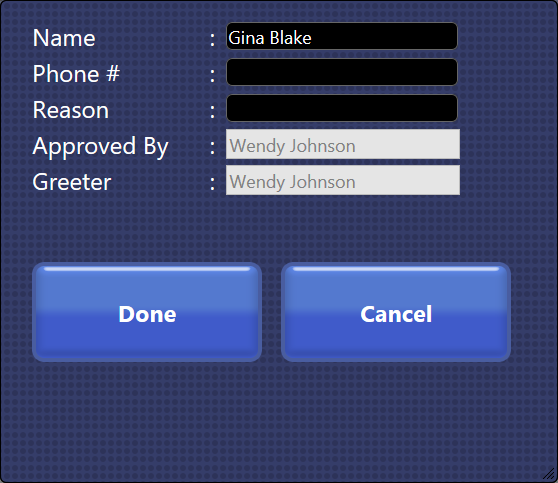 Approved By and Greeter automatically fill in based on who is logged into WashConnect as the cashier and manager.