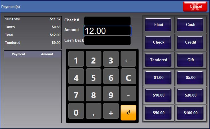 - You can select the short-cut cash amount buttons for $1.00, $5.00 $10.00, $20.00, $50.00 or $100.00.