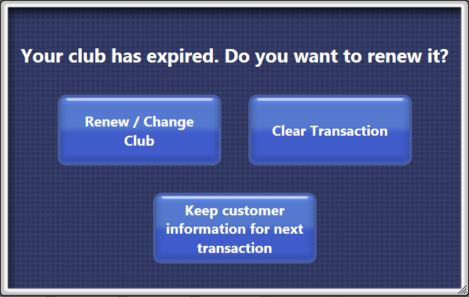 If the club membership expires, the Touch POS will recognize this and prompt to select an action.